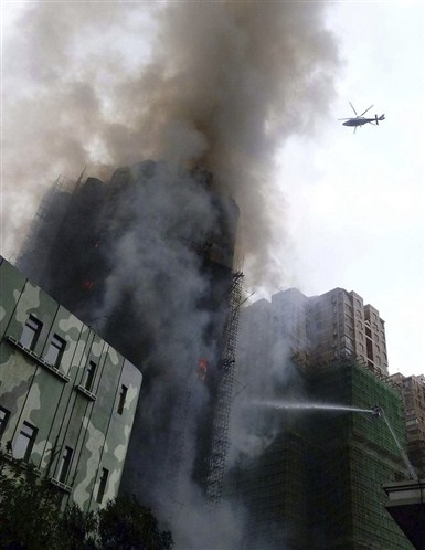 Пожар в 28-этажном жилом здании в шанхайском районе Цзинань возник в понедельник около 14.00 по местному времени (9.00 мск), огонь быстро распространился на большинство этажей здания. Пожарные несколько часов вели борьбу с огнем, эвакуировав из горящего дома около 100 человек. Попытки привлечь к эвакуации людей с верхних этажей полицейские вертолеты не имели успеха из-за слишком сильного задымления.